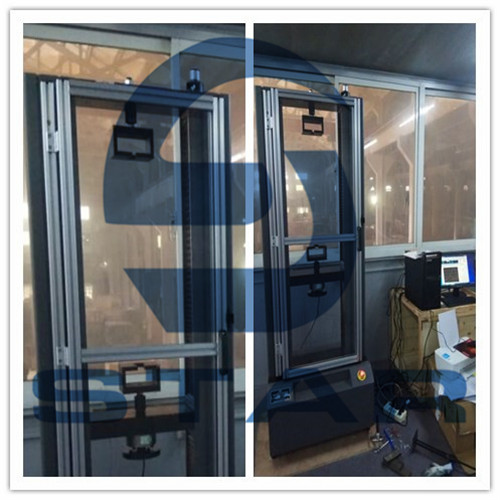 五金件支撐架力學(xué)檢測試驗機根據(jù)客戶試驗要求,試驗機配備亞克力防護門,試樣長900mm,拉伸附具定做掛鉤,壓盤直徑150mm,我公司提供設(shè)備滿足客戶所有試驗需求,客戶對我方售后調(diào)試人員給予良好評價。